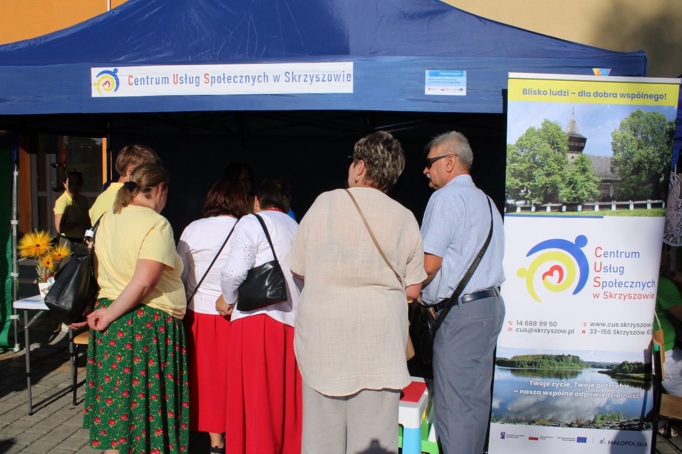 Z okazji XXIX Dożynek Gminnych, w dniu 17 sierpnia 2025r. pracownicy Gminnego Ośrodka Pomocy Społecznej w Skrzyszowie przygotowali specjalne stoisko informacyjne, które miało na celu przybliżenie mieszkańcom zmian związanych z przekształceniem jednostki w Centrum Usług Społecznych, zaplanowanym na wrzesień 2025r. Odwiedzający stoisko mogli otrzymać ulotki informacyjne oraz bezpośrednio porozmawiać z pracownikami o nowych możliwościach wsparcia, jakie będą dostępne w ramach CUS. Przedstawiono nie tylko zakres planowanych usług, ale także ideę i cele samego centrum – podkreślając, że ma ono stać się miejscem kompleksowego wsparcia, odpowiadającym na różnorodne potrzeby mieszkańców. Rozmowy dotyczyły zarówno form pomocy społecznej, jak i działań profilaktycznych, integracyjnych oraz edukacyjnych, które od września mają zostać wdrożone. Stoisko cieszyło się zainteresowaniem, a mieszkańcy mieli okazję zadać pytania i uzyskać praktyczne informacje dotyczące najbliższych planów i korzyści płynących z powstania Centrum Usług Społecznych w Skrzyszowie.