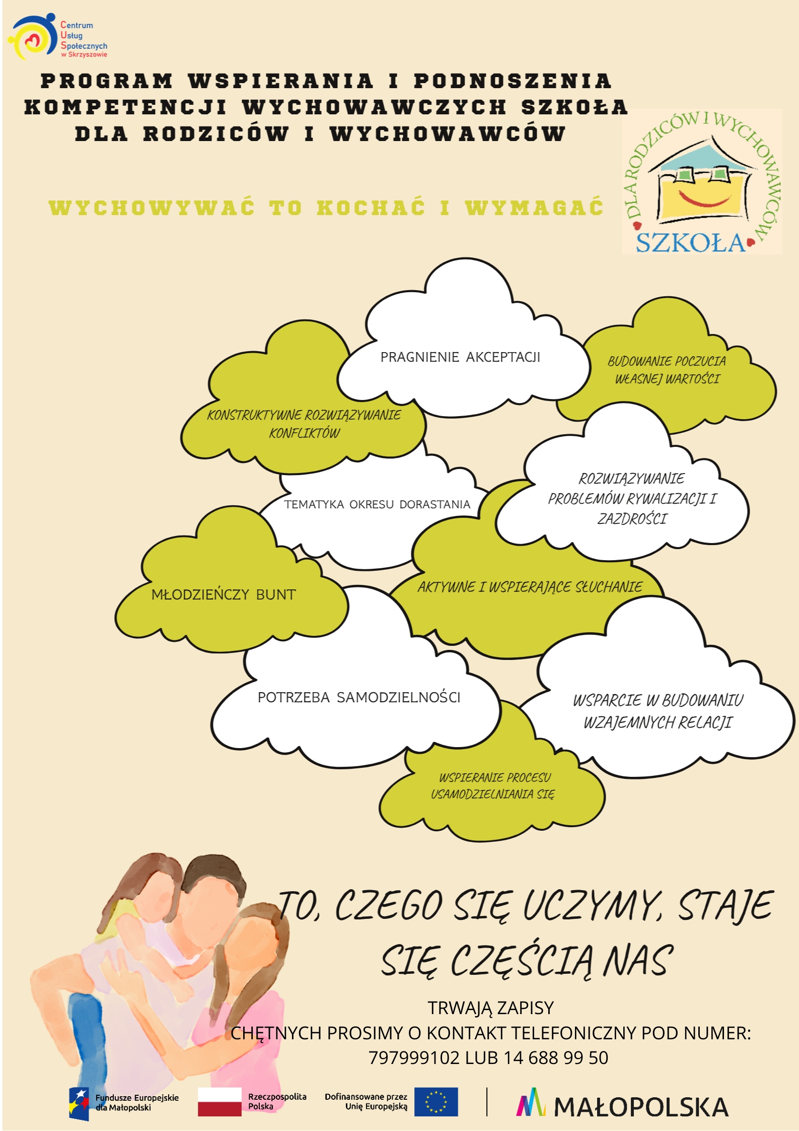 Centrum Usług Społecznych w Skrzyszowie z radością zaprasza wszystkich rodziców i wychowawców na wyjątkowe spotkania, które pomogą udoskonalić Państwa warsztat wychowawczy. To szansa, aby pogłębić zrozumienie potrzeb dzieci oraz wzmocnić Waszą relację